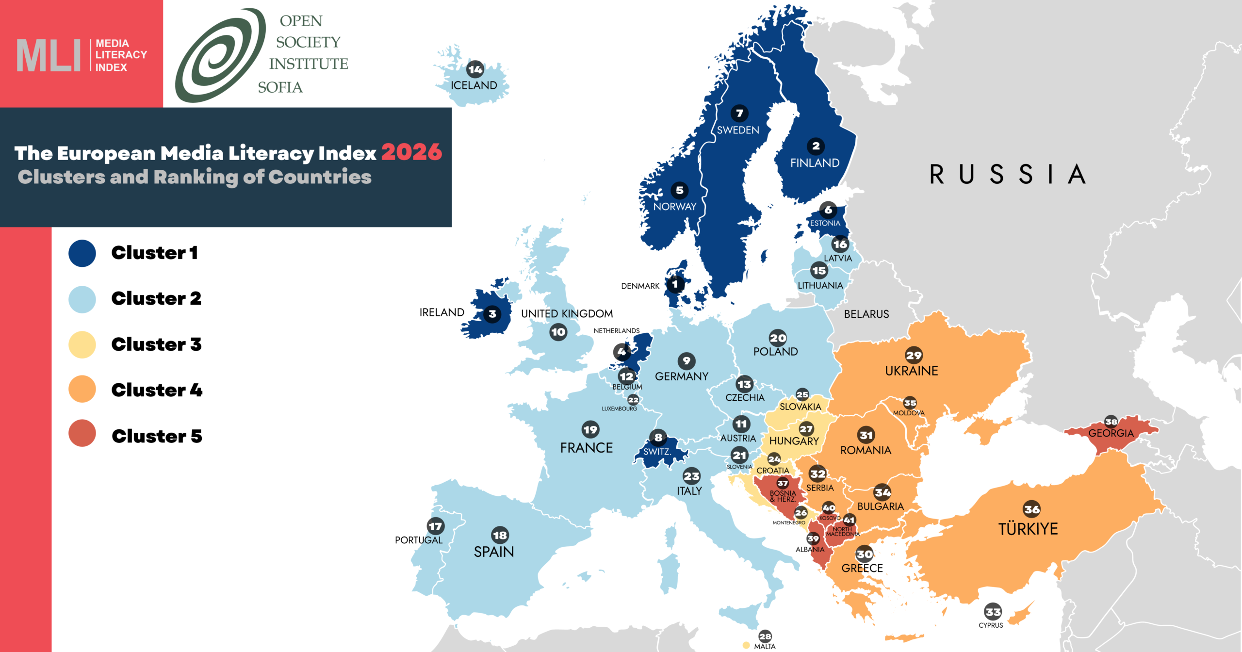 По отношение на цялостната класация на Индекса за медийна грамотност 2026 г., се очертава значителна промяна в европейския и световен контекст, като обществата са изправени пред нови предизвикателства от изкуствения интелект и засилената информационна война.